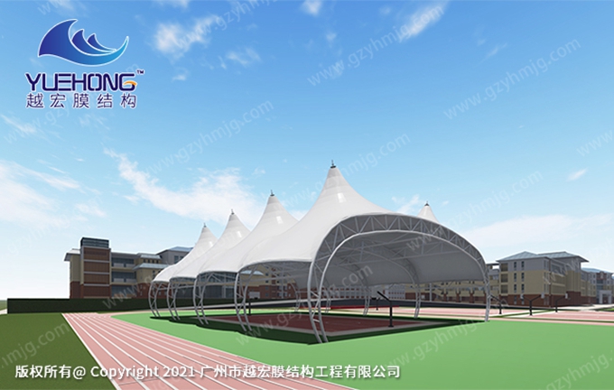 越宏膜結構廠家的風雨球場膜結構是由鋼結構和膜材組成,分別有張拉式膜結構、索膜結構、骨架式膜結構、空間結構式等供選擇,根據不同場景進行設計出個性化膜結構。