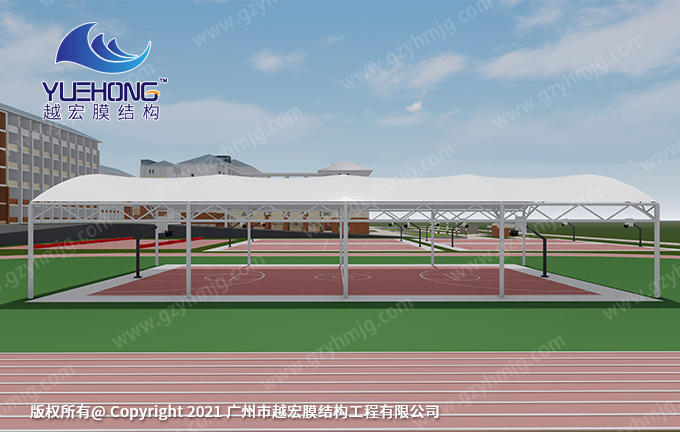 風雨球場膜結(jié)構(gòu)適用范圍籃球場、羽毛球館、高爾夫球場、操場、足球館等等。是屬于球場加蓋風雨棚,能為球場遮陽遮雨,在正常運營中無受氣候影響。